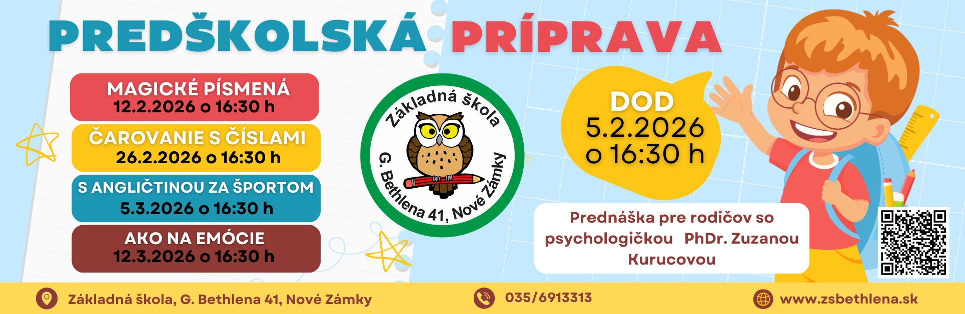 Vážení rodičia a milí žiaci, riaditeľ školy ZŠ G. Bethlena, Nové Zámky udeľuje z organizačných dôvodov (T9 2026) riaditeľské voľno...