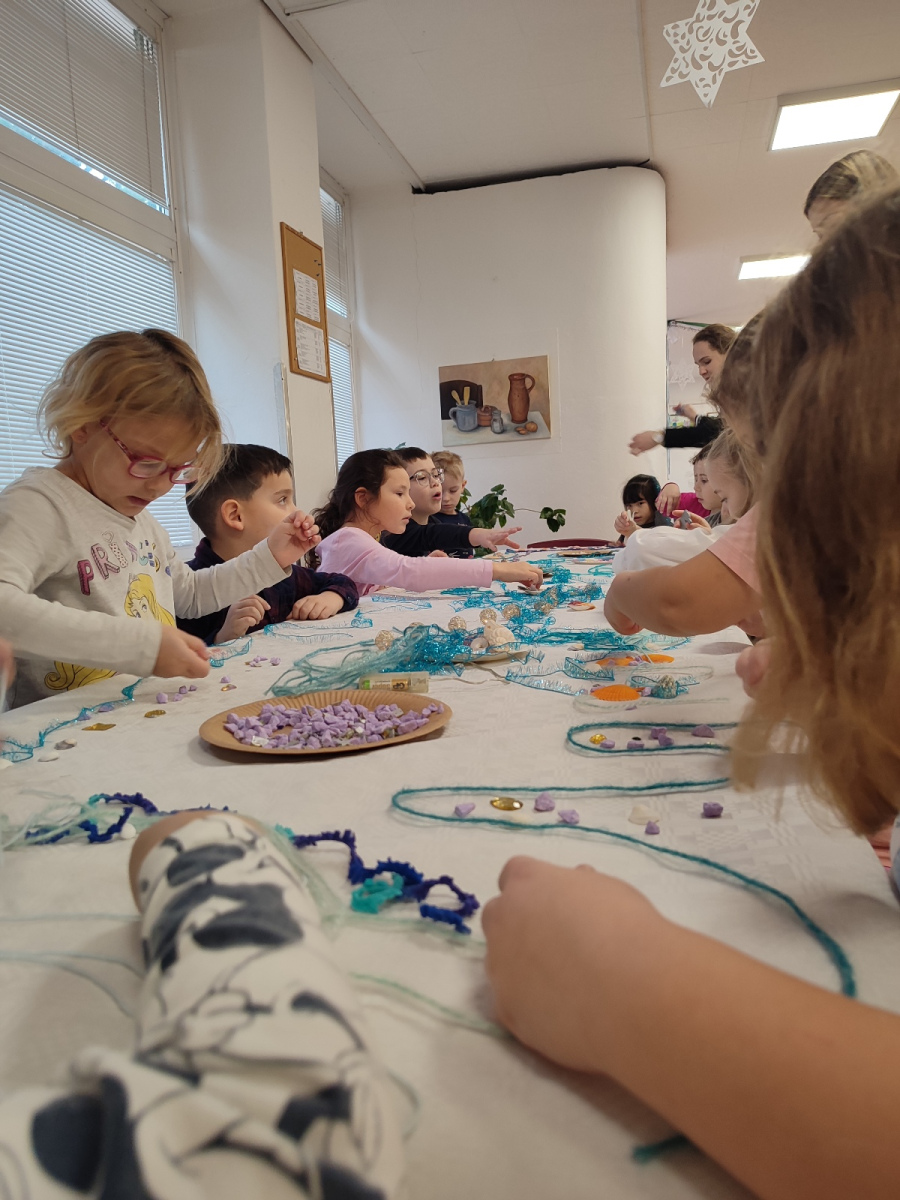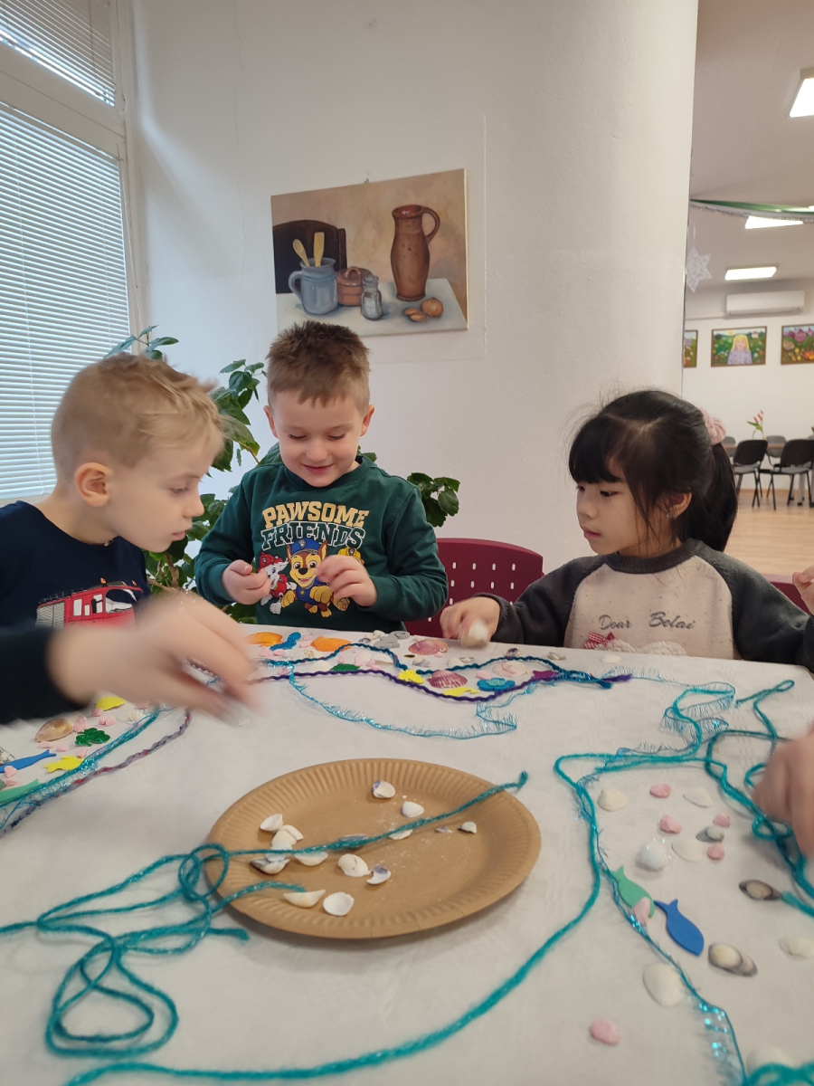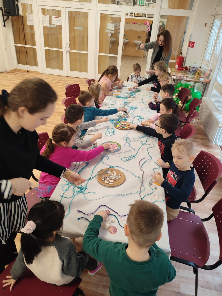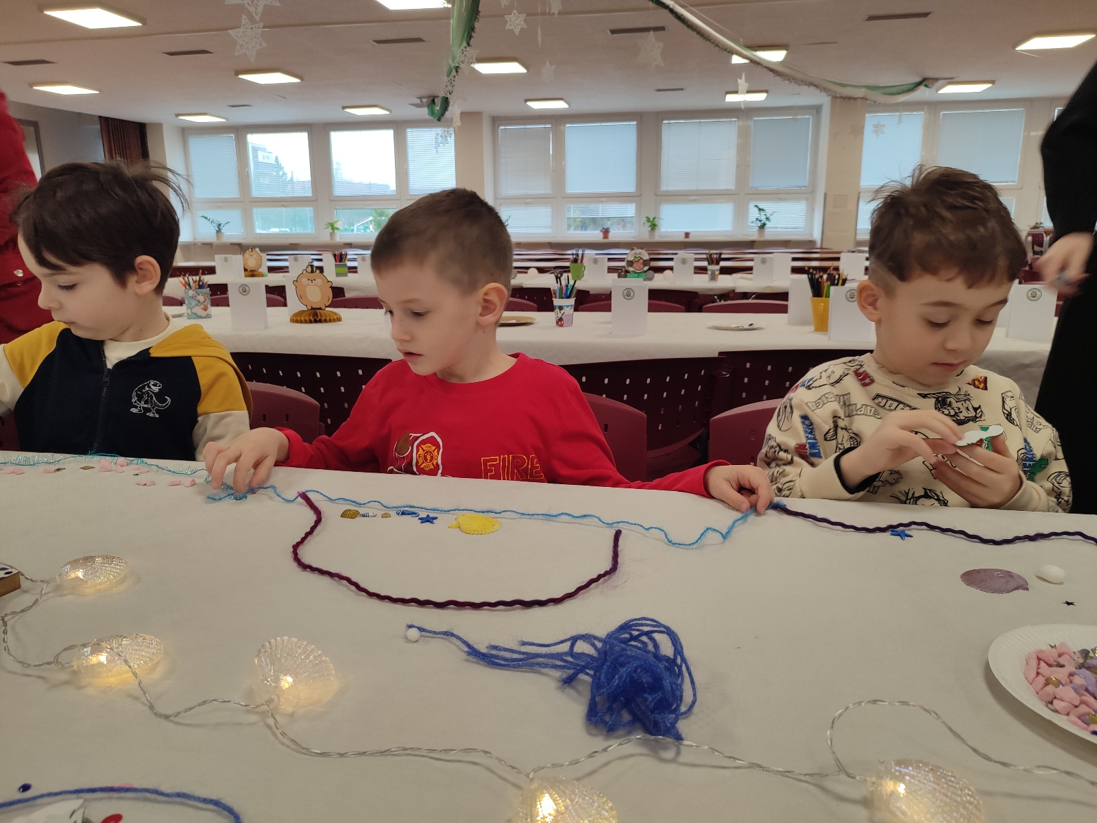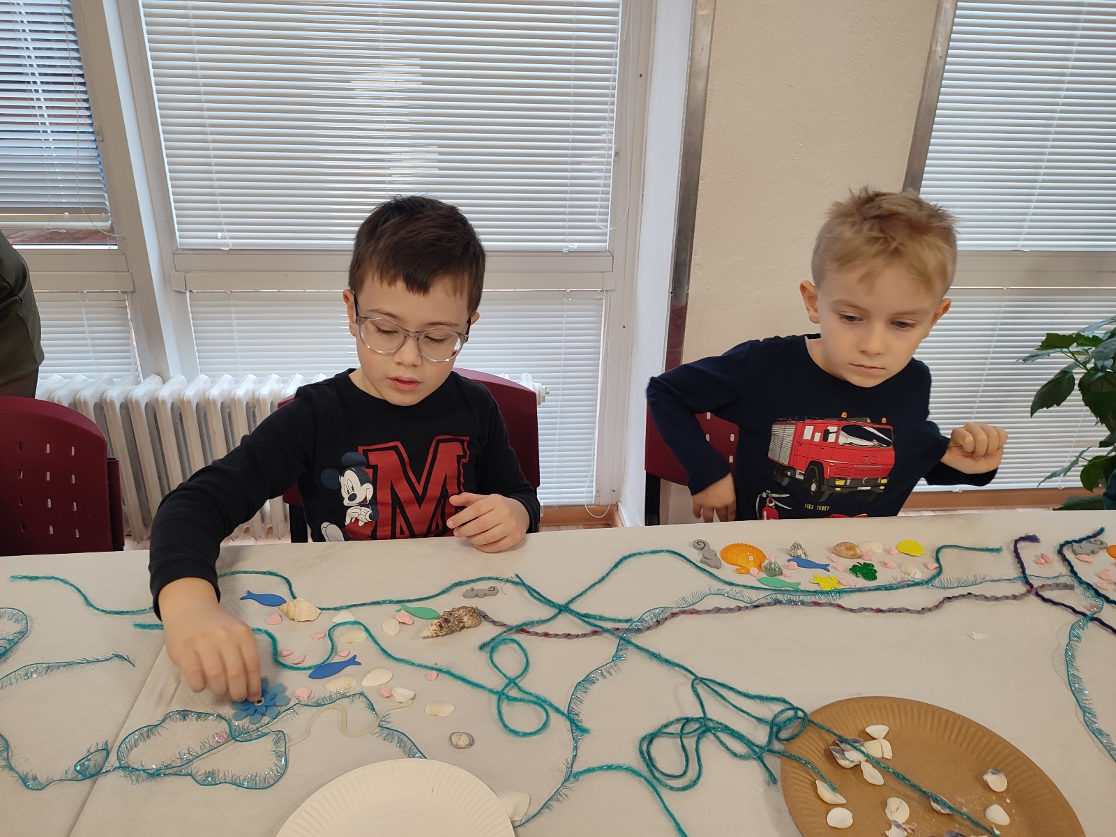Súčasťou programu bola aj spoločná tvorivá činnosť – veľkoformátový obraz na tému more a podmorský svet. Deti pracovali s prírodninami a rôznymi dekoračnými materiálmi – mušľami, kamienkami, farebnými vláknami, trblietkami a ďalšími prvkami.