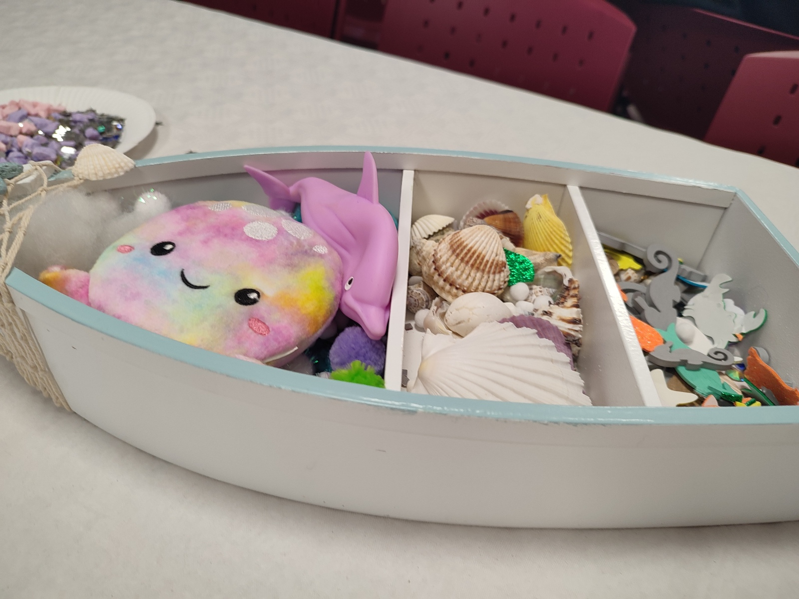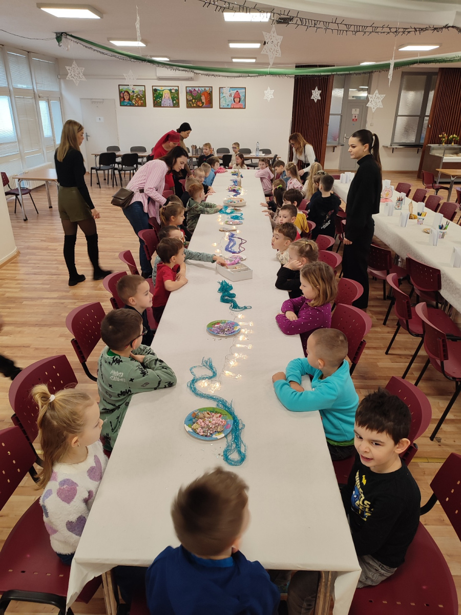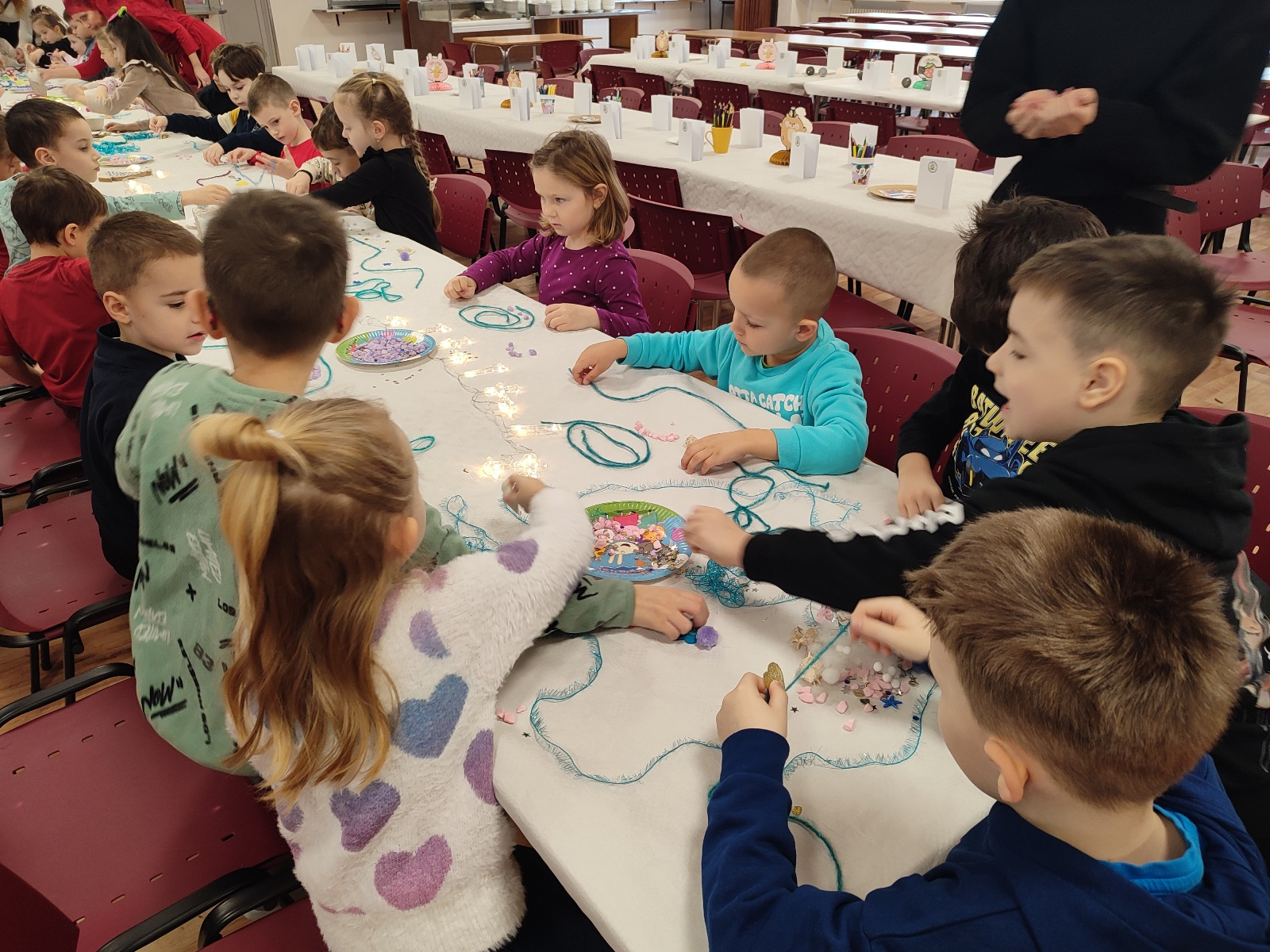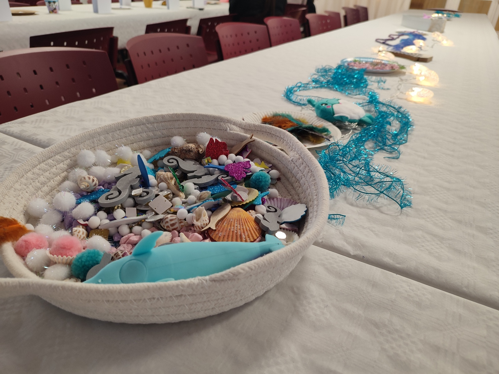 Súčasťou programu bola aj spoločná tvorivá činnosť – veľkoformátový obraz na tému more a podmorský svet. Deti pracovali s prírodninami a rôznymi dekoračnými materiálmi – mušľami, kamienkami, farebnými vláknami, trblietkami a ďalšími prvkami.
