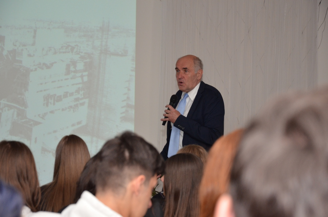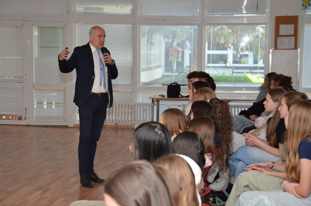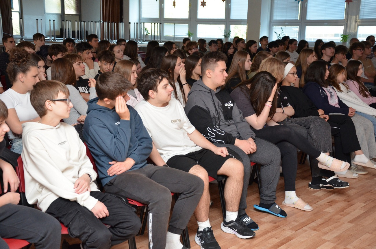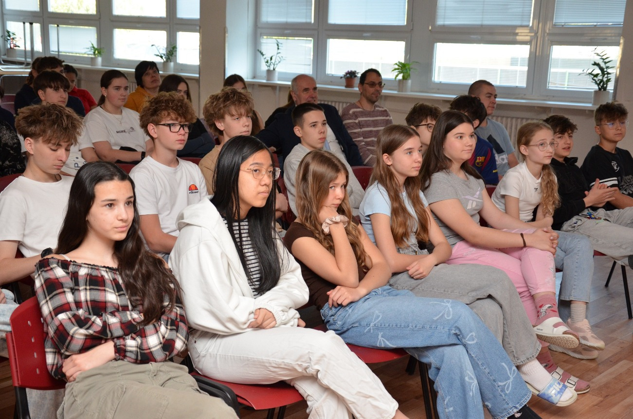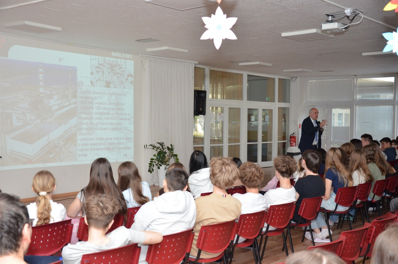 Dňa 30. apríla 2026 sa v našej škole uskutočnila beseda s jadrovým fyzikom z STU Bratislava, pánom profesorom Ing. Vladimírom Slugeňom, DrSc. Beseda sa uskutočnila z iniciatívy Školského parlamentu pri príležitosti 40. výročia jadrovej katastrofy v černobyľskej jadrovej elektrárni.