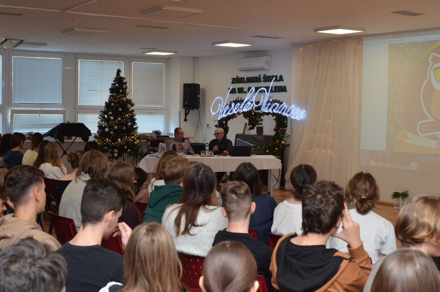 Dnes sme na našej Bethlenke privítali vzácneho hosťa. Pozvanie žiackeho parlamentu prijal Milan Kňažko. Slovenský herec a politik nám porozprával o jednej z najvýznamnejších udalostí našich dejín - 17. november 1989. Pútavým rozprávaním o období " nežnej revolúcie" zaujal našich žiakov 8.a 9. ročníkov, ale i žiakov ŽP. M. Knažko zdôraznil celospoločenský odkaz nežnej revolúcie a významu boja za slobodu a ochranu demokratických princípov.