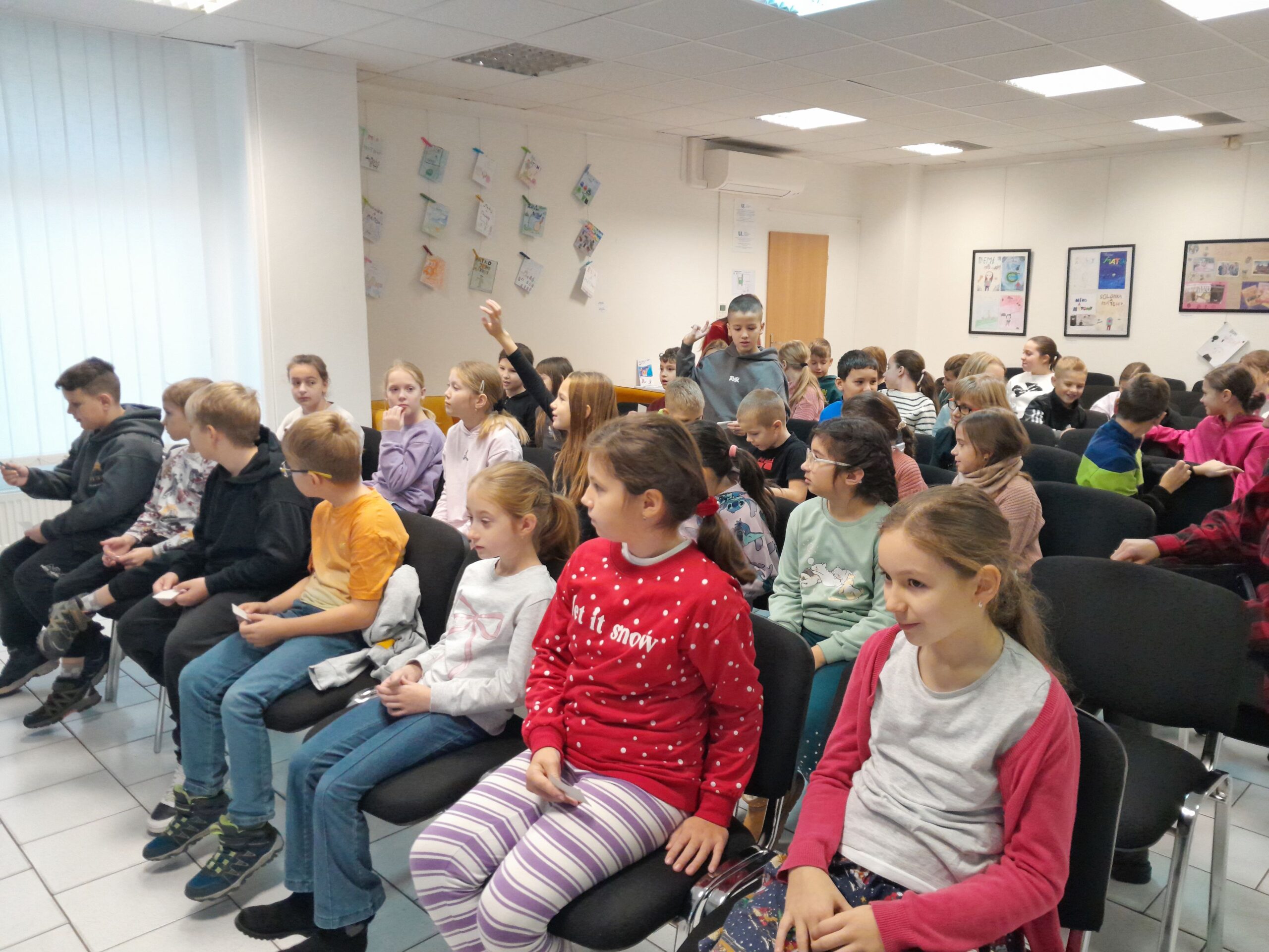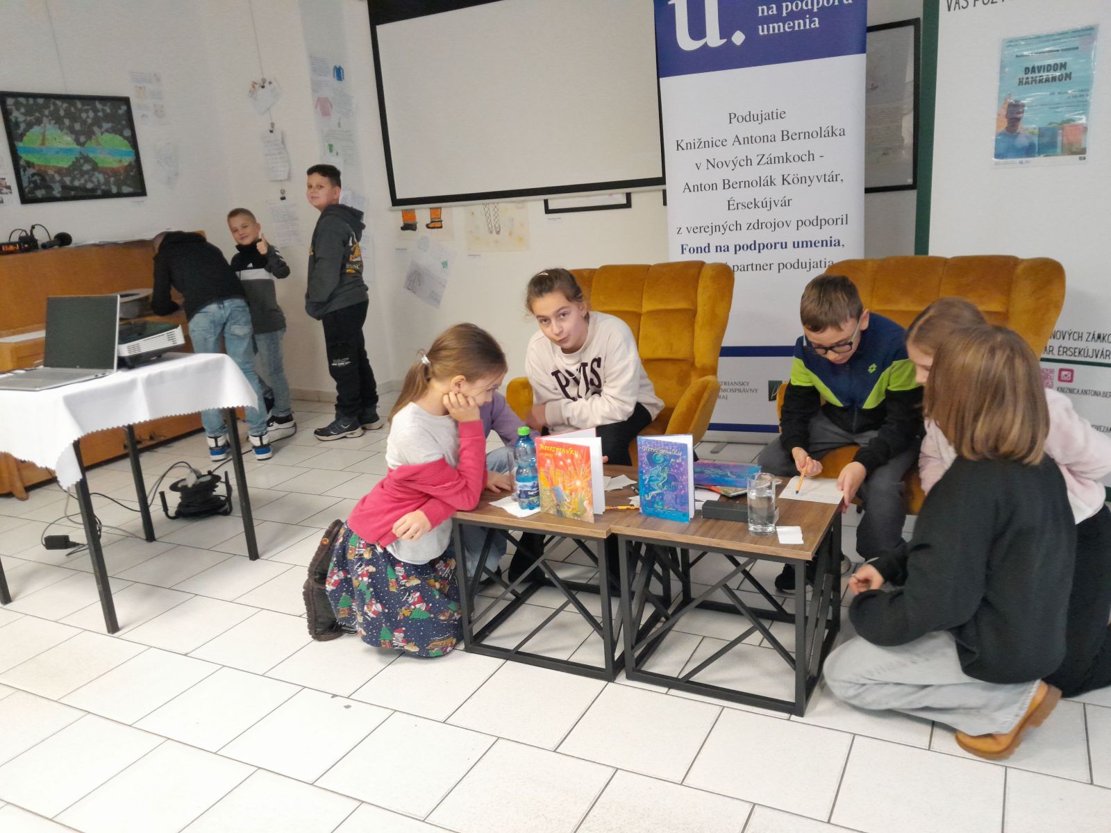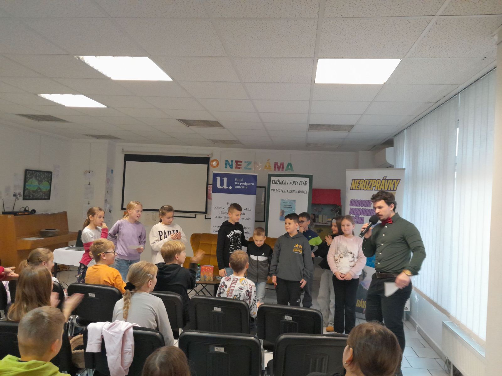 V stredu 10.12. sme triedy 4.A a 3.A navštívili knižnicu A. Bernoláka a zažili sme zaujímavú besedu so spisovateľom Dávidom Hamranom. Pán spisovateľ si pre nás pripravil veľa zaujímavých úloh a hier a na záver i losovanie o zaujímavú cenu. Prečítal nám úryvok zo svojich kníh. Napísal dve knihy: Nerozprávky pre detičky, ktorá je pre deti do 9 rokov a Nerozprávky pre deti, ktorú napísal pre deti od 10 rokov. Nájdeme v nich rôzne príbehy.
