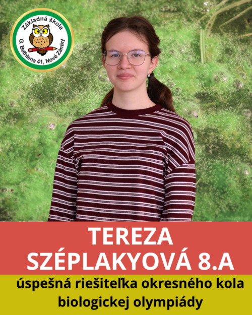 Našu školu reprezentovali Milan Eliáš (9.A) a Tereza Széplakyová (8.A). Obaja naši žiaci si v silnej konkurencii počínali výborne a stali sa úspešnými riešiteľmi okresného kola.