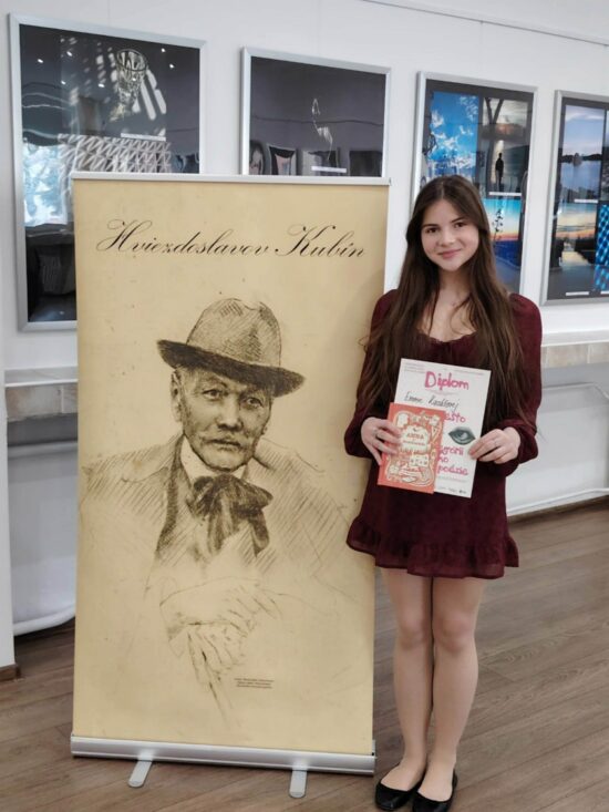 Dňa 24.03.2026 naše talentované recitátorky fantasticky reprezentovali obvod Nové Zámky v okresnom kole recitačnej súťaže Hviezdoslavov Kubín 2026 v Regionálnom osvetovom stredisku v Nových Zámkoch. Spomedzi víťazov obvodných kôl sa rozhodne nestratili a statočne bojovali. Naše dve skvelé recitátorky REBEKA BALOGOVÁ (2.B) a EMMA KASÁŠOVÁ (9. C) si vysúťažili krásne umiestnenia.