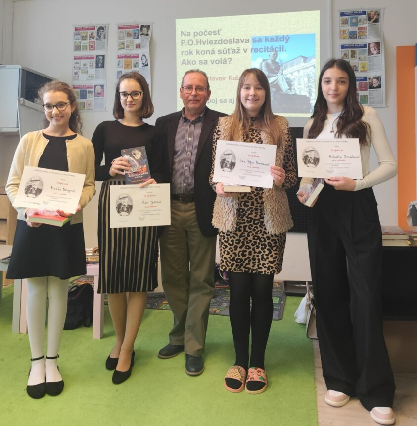 21. január 2026 sa niesol v umeleckom duchu - interpretácie poézie a prózy. Uskutočnilo sa školské kolo recitačnej súťaže Hviezdoslavov Kubín 2026. Tento ročník bol výnimočný, pretože sa ho zúčastnil najväčší počet súťažiacich - 38 recitátorov. Nesmierne sa tešíme veľkému záujmu mladých talentov, ktoré s veľkou láskou a energiou interpretujú texty rôznych autorov. Prehlbujú lásku k našej materčine a cibria si pamäť rôznymi textami, ktorými robia radosť svojim poslucháčom. Naši recitátori súťažili v troch vekových kategóriách. Vďaka patrí pani učiteľkám, ktoré zasadli do pozície porotkýň. Naša porota v zložení: Mgr. Jana Siposová, PhD., Mgr. Andrea Plháková, Mgr. Adriana Balogová mala neľahkú úlohu vybrať tých najlepších.