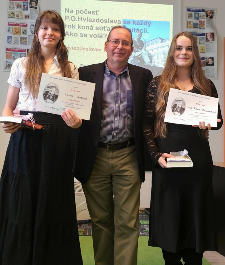 Z rúk pána riaditeľa Mgr. Róberta Jonáša si naši recitátori prevzali diplomy a knižné odmeny. Ďakujeme všetkým zúčastneným deťom za odvahu predstúpiť pred publikum a interpretovať texty známych či menej známych autorov. Postupujúcim recitátorom prajeme veľa šťastia v obvodnom kole!