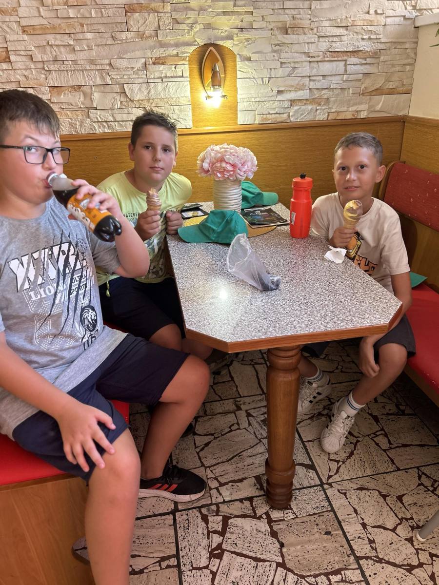Posledný turnus zažili táborníci opäť množstvo skvelých zážitkov a spoznali nových kamarátov. Maľovali kamienky na tému Výlet, zamaškrtili si v cukrárni Petruška, v Kine Mier si pozreli film Asterix a Obelix - Ríša stredu, navštívili ich Štefan Bédi so synom Filipkom aj s ich krásnymi domácimi miláčikmi orlom a sokolom, v Palárikove si pozreli jazdiareň, vykúpali sa vo Wellness a Relax centre, v Patinciach sa plavili po Dunaji na výletnej lodi, v Komárne si pozreli Nádvorie Európy, energiu dobili v 3 Tripl’s a vybláznili sa na ihriskách. Celý týždeň zbierali bethlenky - žetóny a v piatok si ich vymenili za vecné odmeny podľa vlastného výberu. Veríme, že táborníci zažili super týždeň!!!!!!