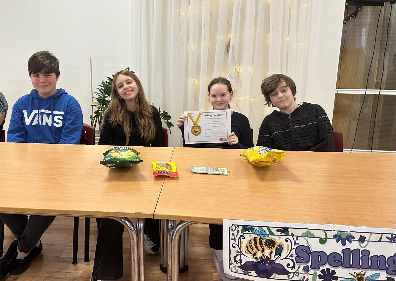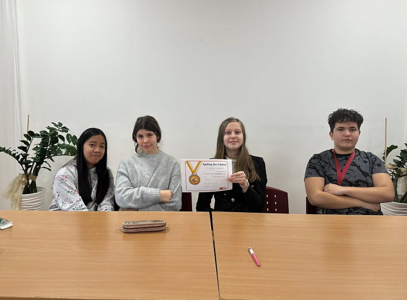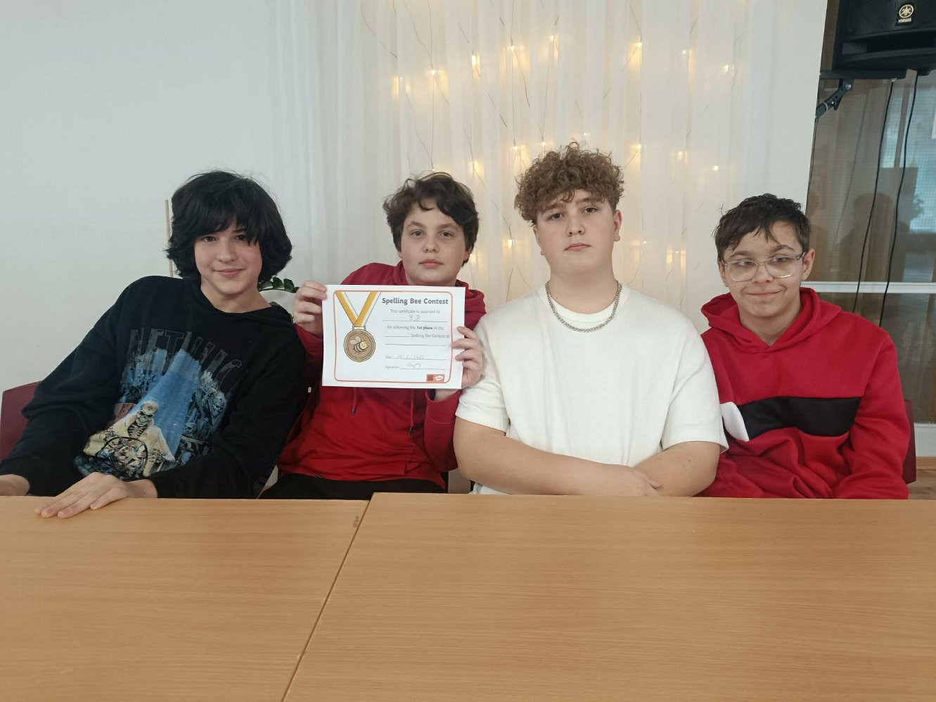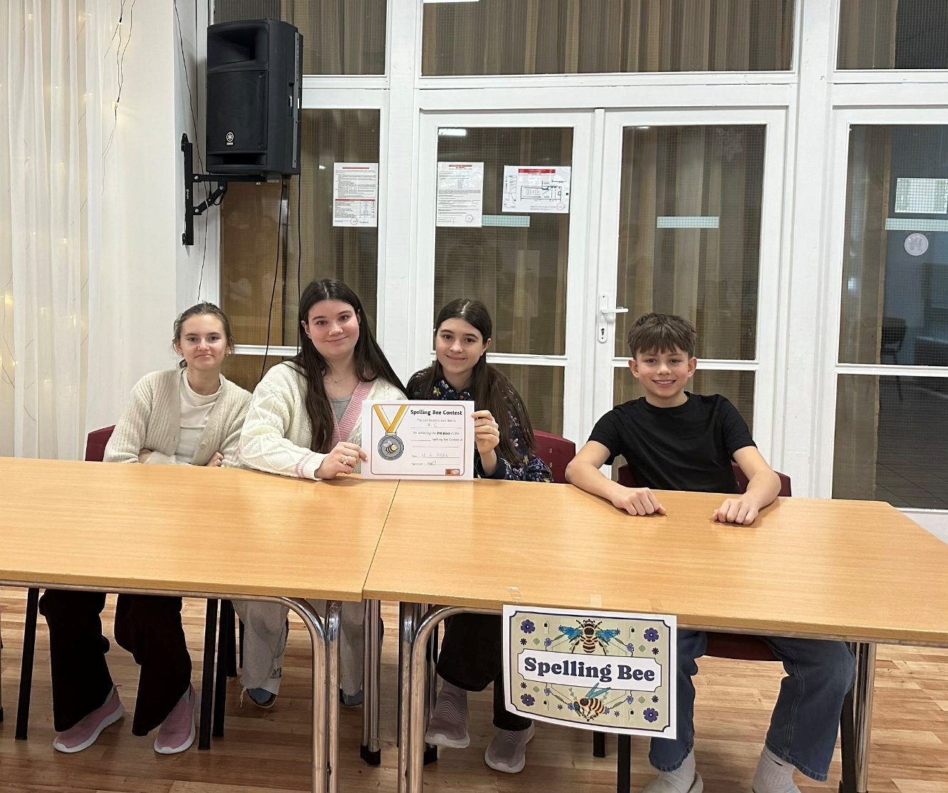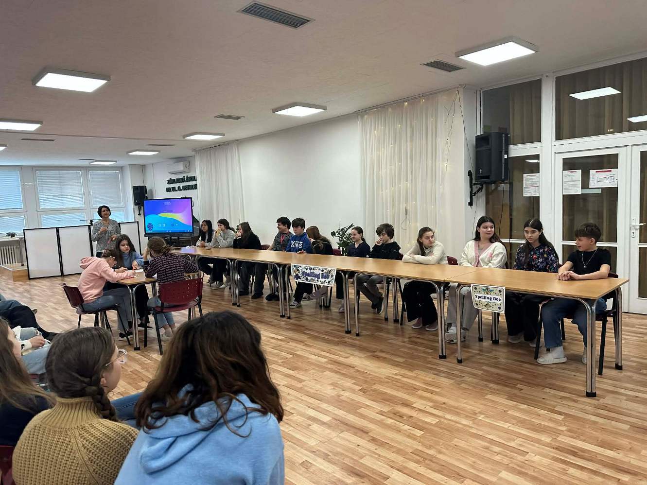 Pani učiteľka Christel si pre našich siedmakov a ôsmakov pripravila aj súťaž Spelling bee. Samostatne aj v skupinke si triedy zmerali sily v anglickom pravopise.
