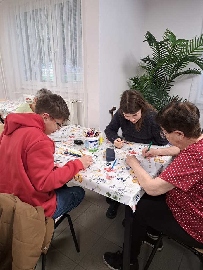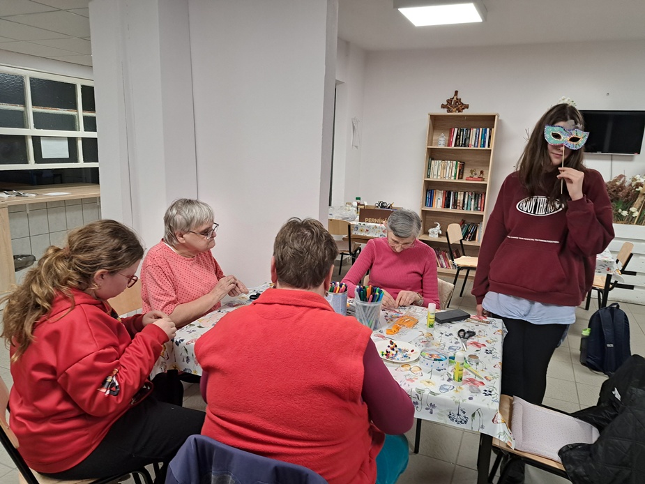 Žiaci 6.-9. ročníkov našej školy opäť navštívili seniorov v DSS Vek Nádeje v Nových Zámkoch, kde sa s nimi pravidelne stretávajú a spoločne trávia príjemné chvíle. Tentoraz sa ich návšteva niesla v duchu fašiangov. Spoločné posedenie bolo zamerané na tvorivé dielne. Žiaci spolu so seniormi vyrábali a zdobili veselé fašiangové škrabošky, maľovali, vystrihovali šašov a pracovali s rôznymi materiálmi. Kreatívna atmosféra podporila spoluprácu, rozhovory a dobrú náladu počas celého stretnutia. Popri tvorení sa rozprávali aj o fašiangových zvyklostiach a tradíciách. Žiaci seniorom priblížili, ako prebiehajú fašiangy v našej škole - starší žiaci z 5.-9. ročníka sa pripravujú na žiacky charitatívny ples a deti z 1. stupňa sa už tešia na školský karneval. Seniori sa podelili o svoje spomienky na fašiangové oslavy a porozprávali o podujatiach, ktoré ich v zariadení ešte čakajú, a na ktoré sa tešia. Na záver si všetci sľúbili, že sa na ďalšom stretnutí porozprávajú o tom, ako si fašiangové slávnosti užili a spoločne si pozrú fotografie z týchto veselých dní.