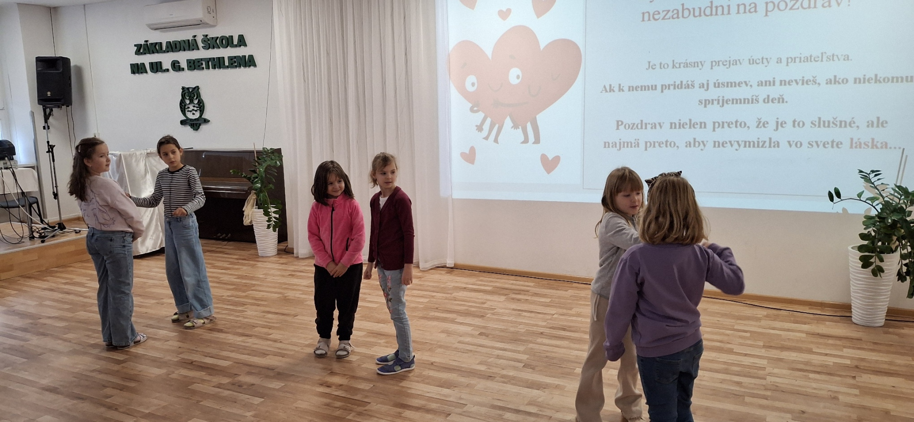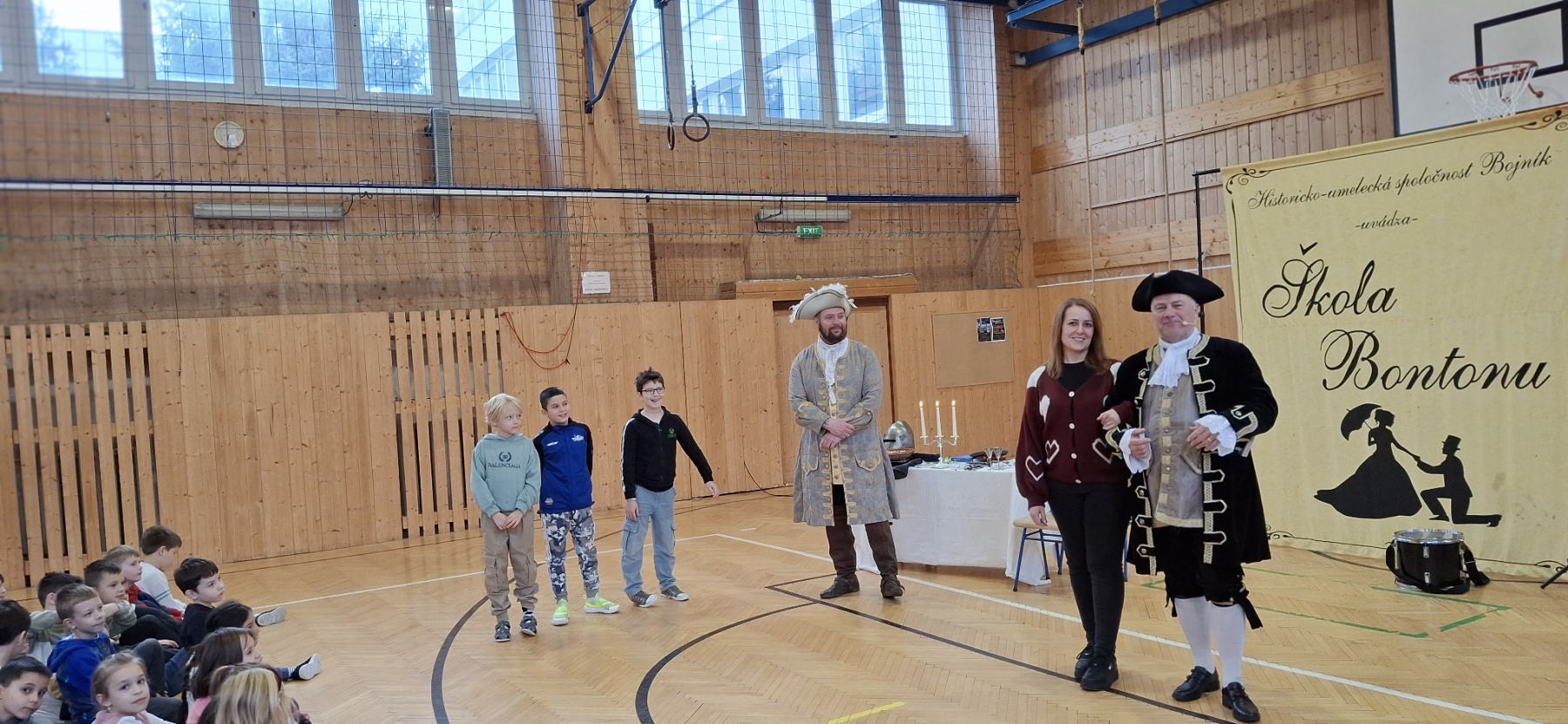 Táto streda bola opäť zaujímavá a očakávaná hlavne našimi žiakmi, pretože 19.11. sme mali opäť Deň bez školskej tašky. Už druhýkrát sme pre žiakov pripravovali vzdelávacie aktivity inou formou ako sú zvyknutí. Veľkou spoločnou témou bolo aj divadelné predstavenie s názvom „Škola bontónu.“ Na predstavení sa žiaci dozvedeli, ako to bolo so slušným správaním medzi ľuďmi, prejavmi taktu a bontónu pred mnohými desiatkami ba i stovkami rokov a ako je to dnes. Teoretické poznatky si mohli žiaci vyskúšať zaujímavým interaktívnym spôsobom. V jednotlivých ročníkoch žiaci pokračovali v rozvíjaní vedomostí o slušnosti a etikete rozmanitým spôsobom – ako sa zdravíme, kedy treba použiť čarovné slovíčka, čo sa patrí dodržiavať v priestoroch školy, jedálne, v reštauráciách, v obchodoch, v kine, divadle, v cukrárni. Ako sa vhodne obliecť na športové podujatie a ako do divadla, spoločne si vytvorili módnu prehliadku. Štvrtáci si vyskúšali prestrieť slávnostný stôl presne podľa pravidiel stolovania a takto na krásne pripravenom stole sa potom naobedovali v jedálni. Všetci žiaci si skúšali rôzne formy zdramatizovania situácií vo forme scénok ako telefonujeme, ako nakupujeme, ako vzchádzame do reštaurácií, kto komu dáva prednosť, ako pripraviť narodeninovú oslavu a pod. Spoločne súťažili v kvíze o slušnom správaní a bontóne, vystrihovali, vyfarbovali a lepili rôzne motivačné obrazy a plagáty s pozdravmi, heslami o tom ako sa majú voči sebe správať, pozreli si zaujímavé videá a zapojili sa do rozhovorov o bontóne.
