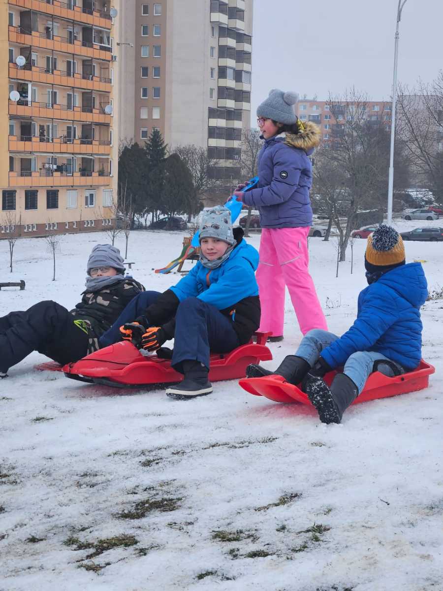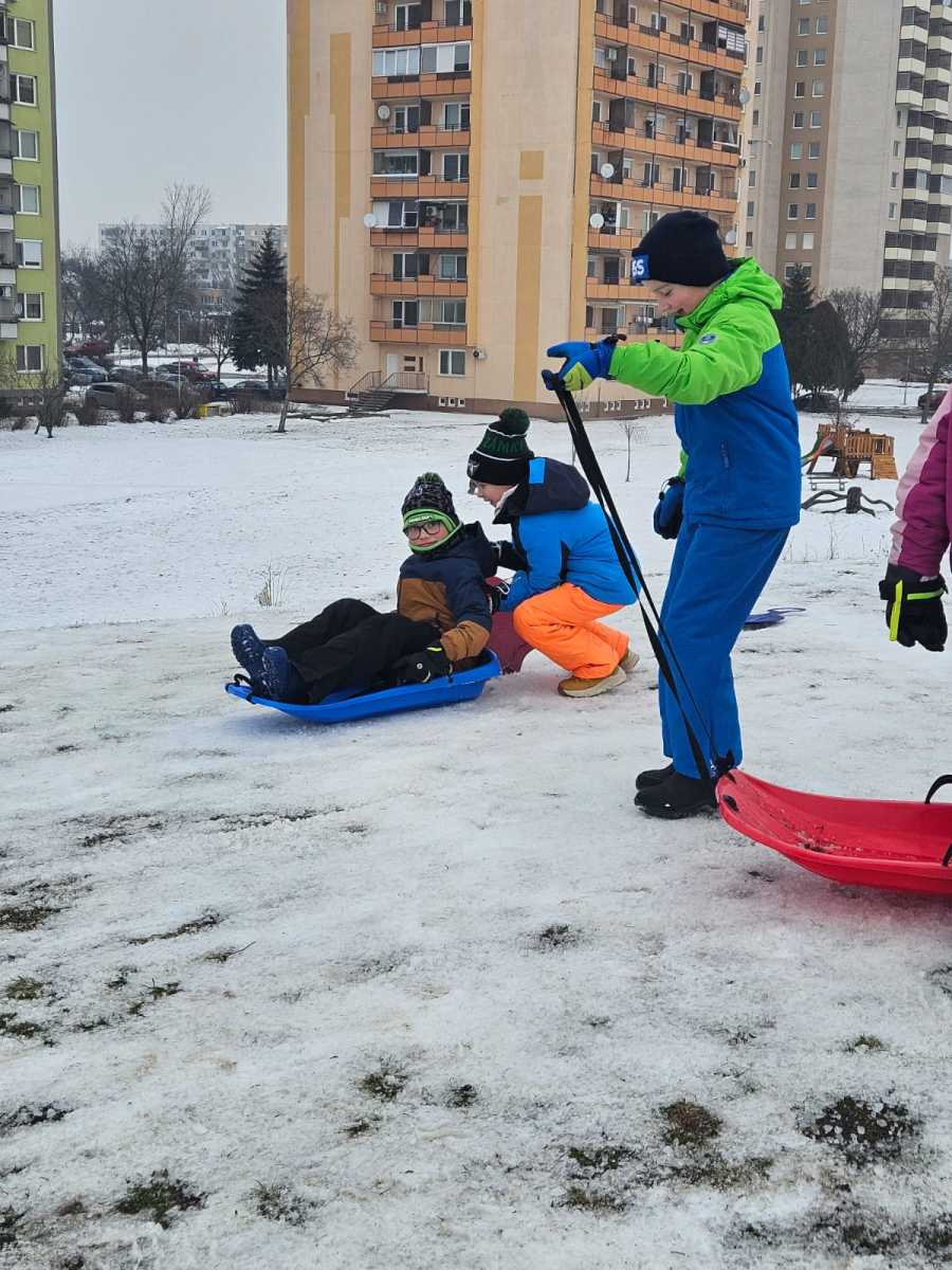 Sánkovačka na kopci na Nábrežnej nemala chybu! 18. januára 202618. januára 2026 Ján Guliš Sánkovačka na kopci na Nábrežnej nemala chybu! Sánkovačka na kopci na Nábrežnej nemala chybu! Sneh, veľa smiechu, rýchla sánkovačka a skvelá nálada nechýbali. Bol to vydarený zimný deň. Klubisti z 3.B triedy a vych. Dagmara Gabinová