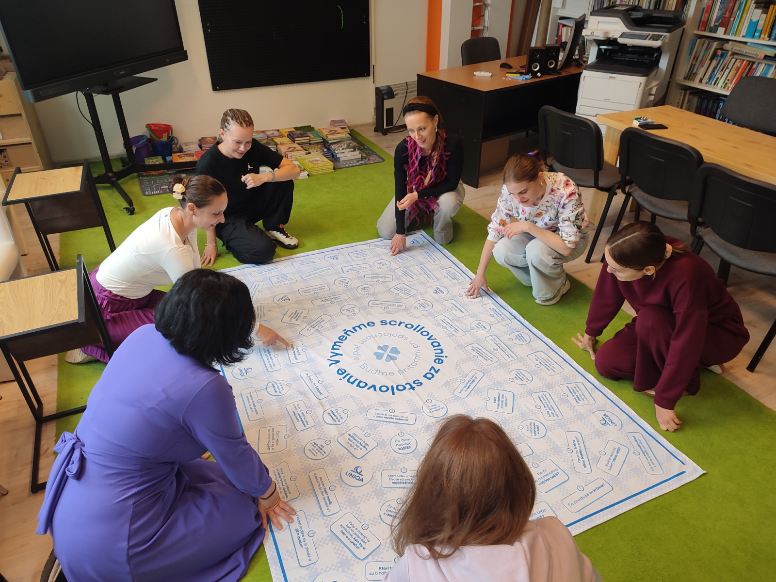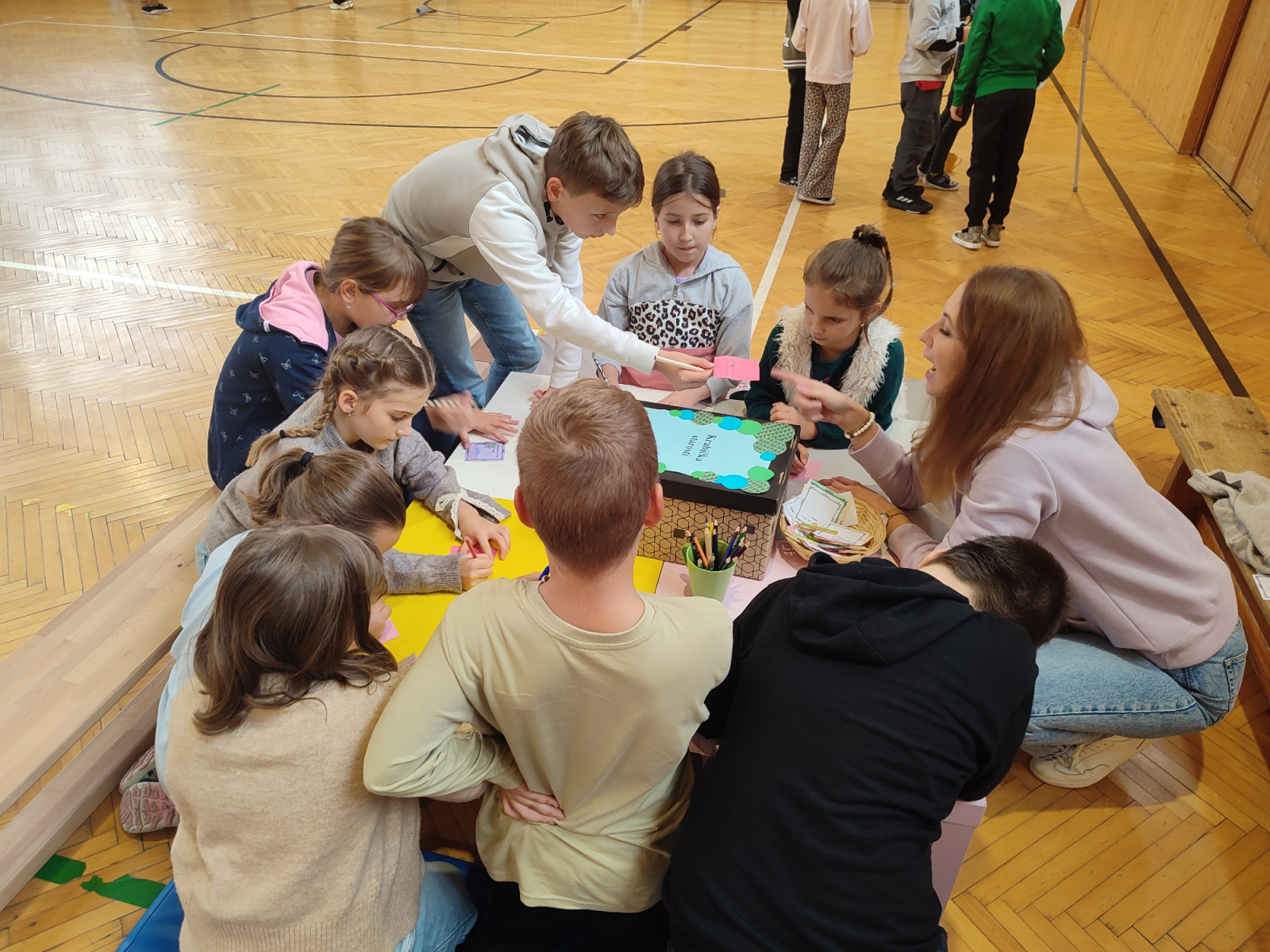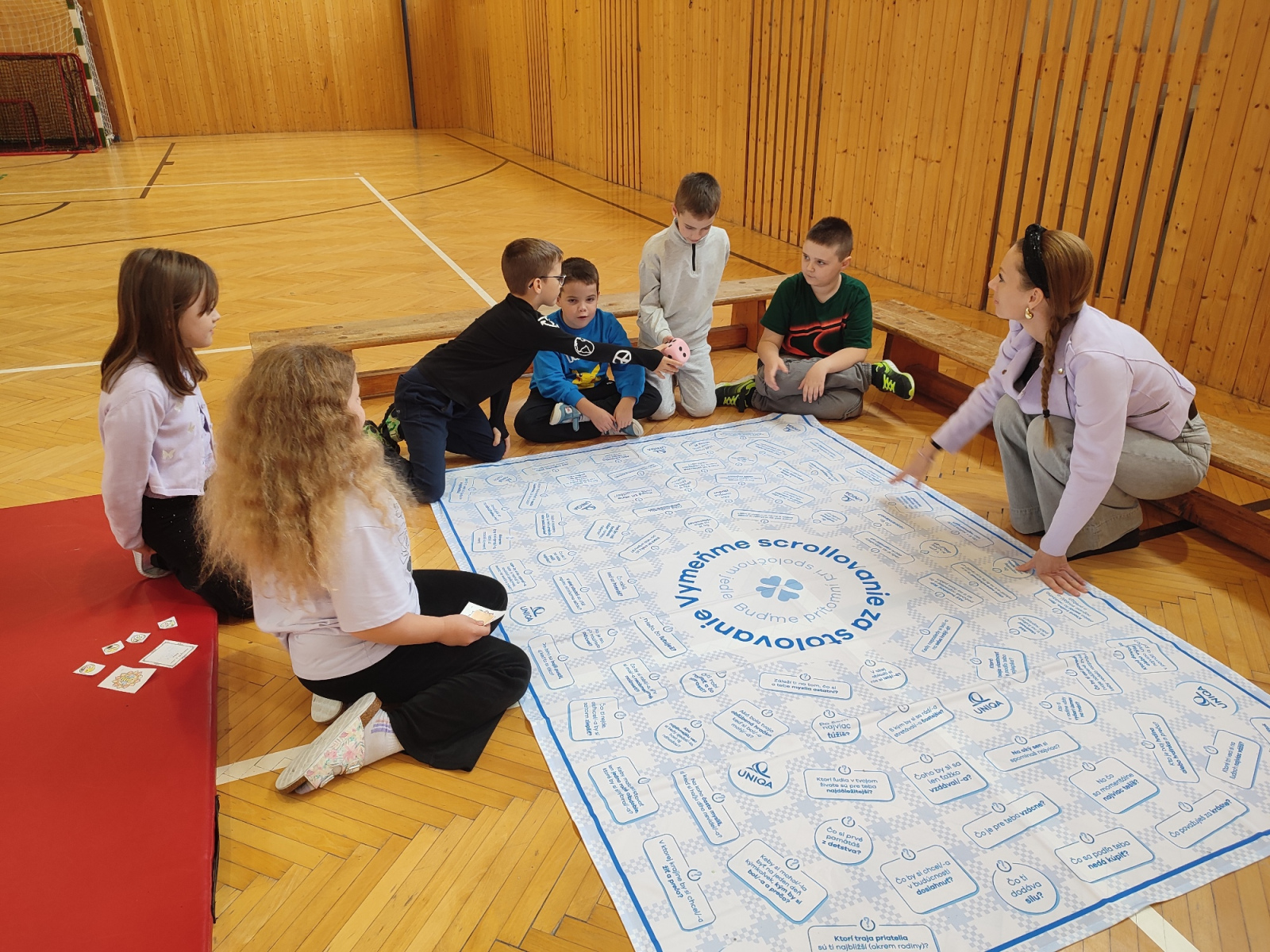 Dňa 10.10.2025 sme na škole oslávili Svetový deň duševného zdravia, nazvaný Deň duševnej odolnosti/Spolu sme odolní.  Na prvom stupni sme v telocvični realizovali aktivity ako si udržať a posilniť duševné zdravie.  Prvá aktivita, do ktorej sa deti zapojili bola návšteva terapeutickej miestnosti, kde  bol žiakom premietnutý krátky animovaný film  Borisova pekáreň a následne sa žiaci  učili  používať antistresovú loptičku.  Cieľom filmu bolo viesť žiakov k zamysleniu sa  nad tým, čo im pomáha nevzdať sa, hľadať riešenia pri prekážkach a akú rolu zohrávajú vzťahy a podpora okolia. Druhou aktivitou, ktorú viedla pani asistentka  Mgr. Erika Benetti, sme podporili spoločné rozhovory  žiakov pomocou konverzačného obrusu od Uniqy,  aby žiaci bez rušivých technológií zažili pocit spolupatričnosti a blízkosti. Tretia aktivita bola venovaná mandale ako meditačnému prostriedku na upokojenie duše a mysle. Nasledujúcou aktivitou bolo Calm down miesto – kde si deti s našou pani asistentkou Dankou Baďurovou zatancovali hip hop. Pri piatej aktivite žiaci tvorili Obraz prianí, kde si mohla skupina detí naraz nakresliť svoje tajné želania a vytvorili tak jedinečný obraz prianí. Poslednou aktivitou bolo stanovisko nazvané záchranný balíček, kde si žiaci na kartičky mohli písať mená osôb, ktoré im pomáhajú, činnosti, ktoré ich upokojujú alebo vlastné povzbudivé vety, ktoré si mohli zobrať so sebou domov,  do krabičky starostí mohli deti vhadzovať svoje napísané a nakreslené  starosti.   Pre druhý stupeň sa   ešte budú   realizovať prednášky na tému „Čo je to duševná odolnosť?“ spojená s aktivitami. Všetci žiaci aj zamestnanci školy sa zapojili do tohto dňa aj oblečením do fialovej farby, najmä žiaci zo Študentského parlamentu. Pre rodičov a učiteľov sme ponúkli možnosť zúčastniť sa  webinára s Matejom Tóthom – olympijským víťazom v chôdzi na 50 metrov. Chcem sa poďakovať aj mojim kolegyniam Mgr. J. Csandovej a Mgr. Dominike Švecovej za aktívnu pomoc pri realizácii tohto dňa.  Aktivity  boli uskutočnené v spolupráci s Ligou za duševné zdravie, ktorej touto cestou  veľmi pekne ďakujeme.