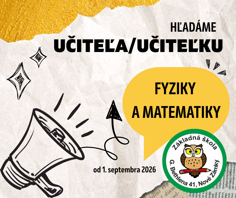 Základná škola, G.Bethlena 41, 940 01 Nové Zámky prijme do pracovného pomeru s nástupom od 1. septembra 2026
